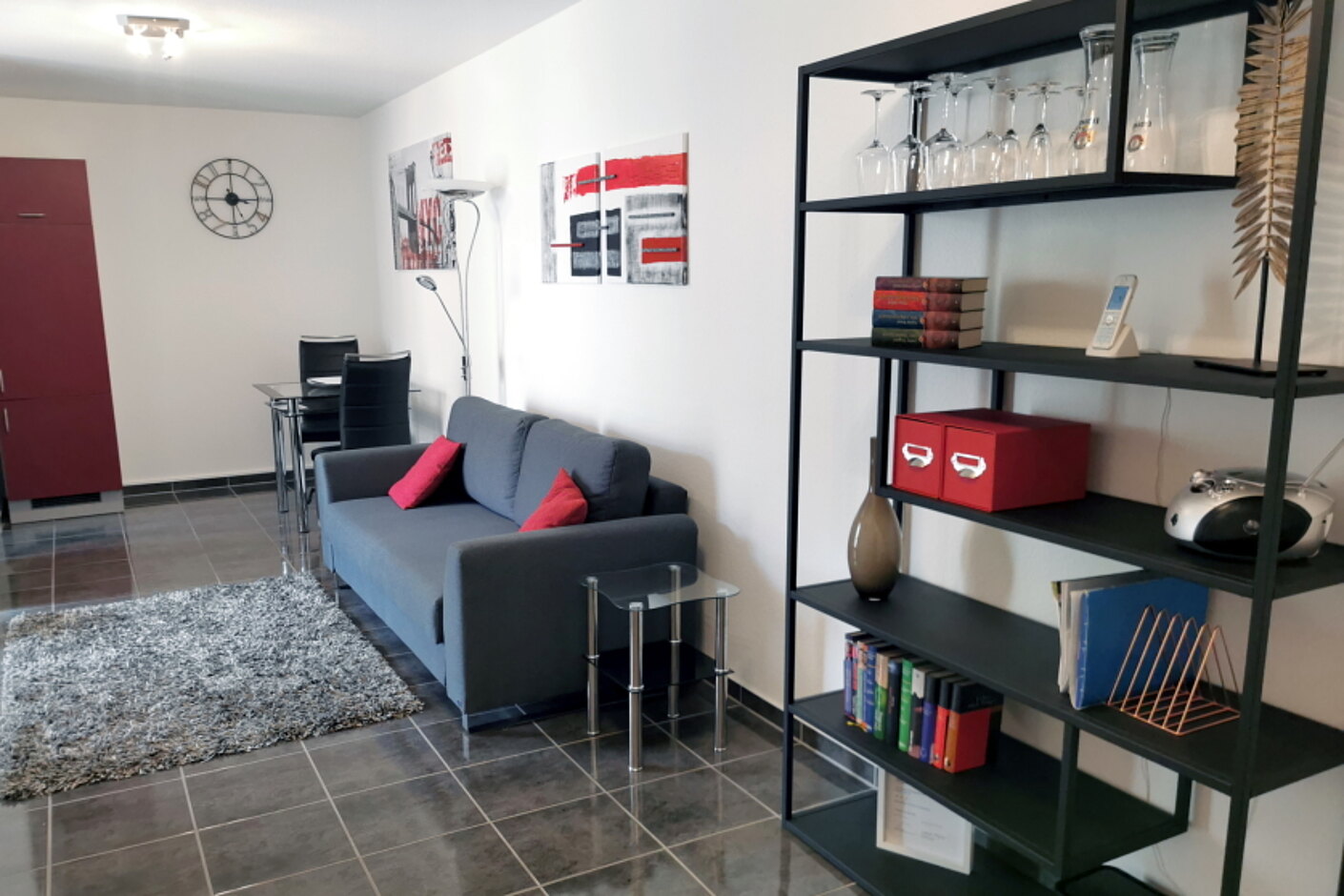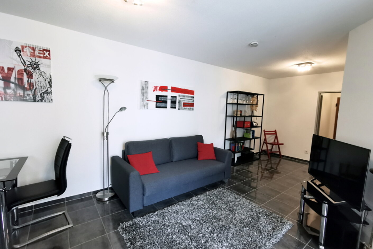 Es handelt sich um eine gepflegte, geschmackvoll eingerichtete Wohneinheit mit großem Wohnzimmer, separater Küche, Schlafzimmer, Badezimmer, Abstellraum und Balkon. Die Küche verfügt über Geschirrspüler, Backofen, Induktionskochfläche, Kühl-Gefrierschrank, Toaster, Filter-Kaffeemaschine und Kapselmaschine: NESCAFÉ® Dolce Gusto®, Wasserkocher und Geschirrausstattung.
