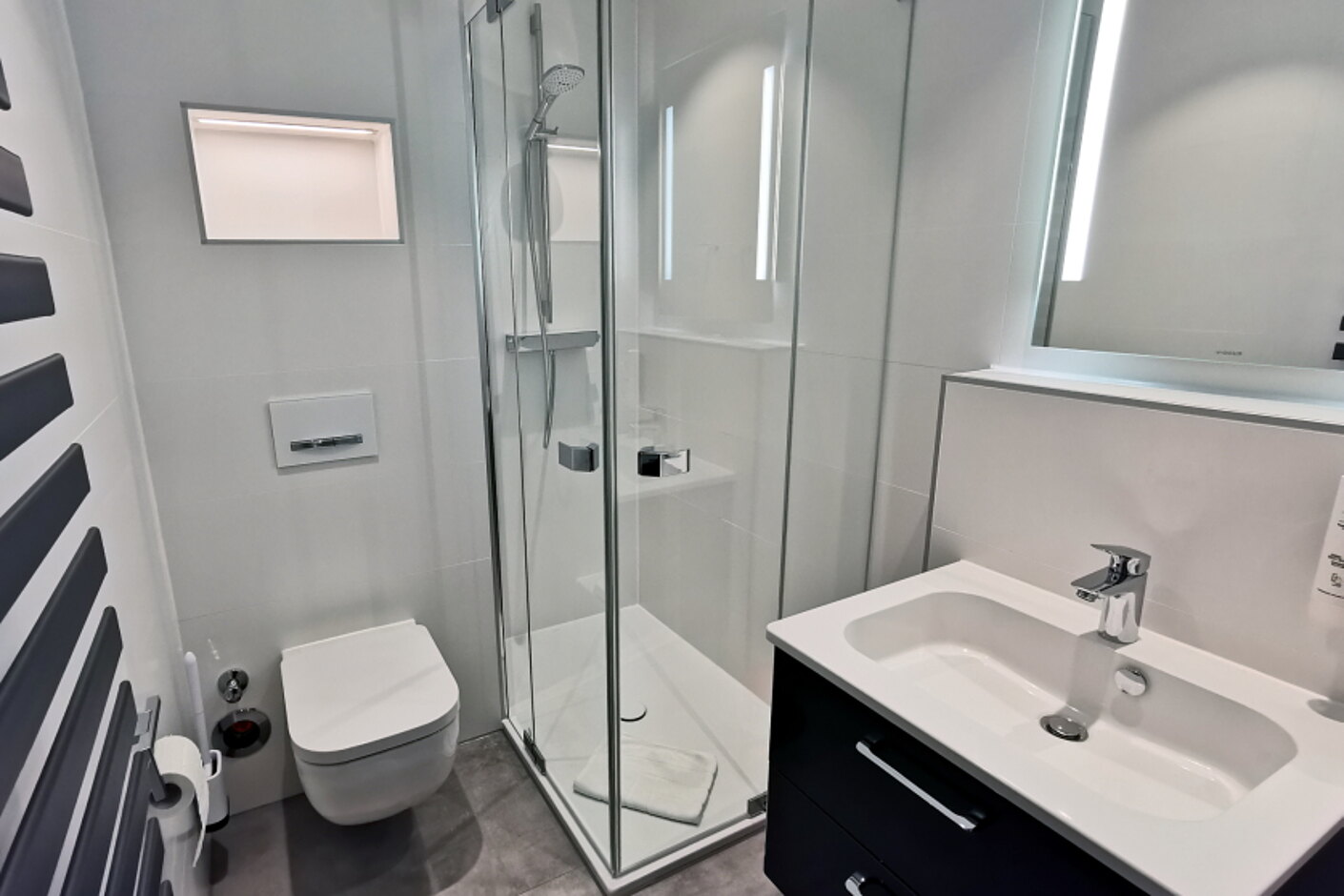 - Bad mit großer Dusche, WC, Fön