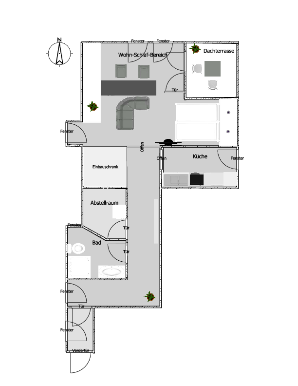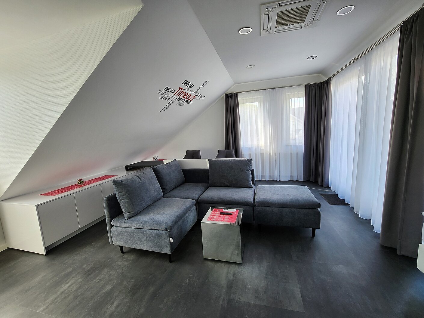 Genießen Sie außergewöhnliche Urlaubstage in unserer komplett renovierten und klimatisierten 5-Sterne-Ferienwohnung im Kurviertel. Die freundliche, helle Einrichtung strahlt mit der Sonne um die Wette. Unser topmodernes, kompaktes Ein-Raum-Apartment mit separater Küche ist bestens geeignet für alle, die minimalistisch-praktischen Komfort und klare Linien bevorzugen. Die Wohnung liegt in der vierten Etage, hat einen separaten Eingang, ein Tageslichtbad mit Dusche und WC und eine geräumige Dachterrasse mit tollem Blick über die Dächer von Bad Kreuznach. Hier sind Sie richtig, wenn Sie Ruhe und Entspannung suchen.