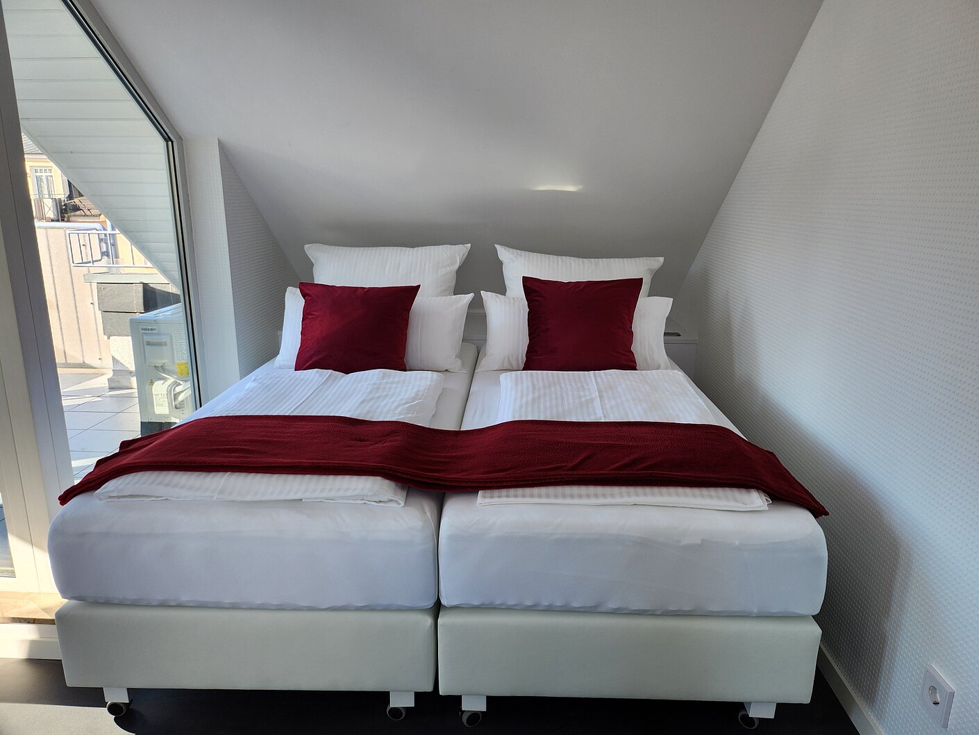 Und weil die Wünsche unserer Gäste uns Befehl sind, haben Sie in dieser Wohnung auch die Möglichkeit, die beiden komfortablen Boxspringbetten entweder zusammen oder auseinander zu platzieren.